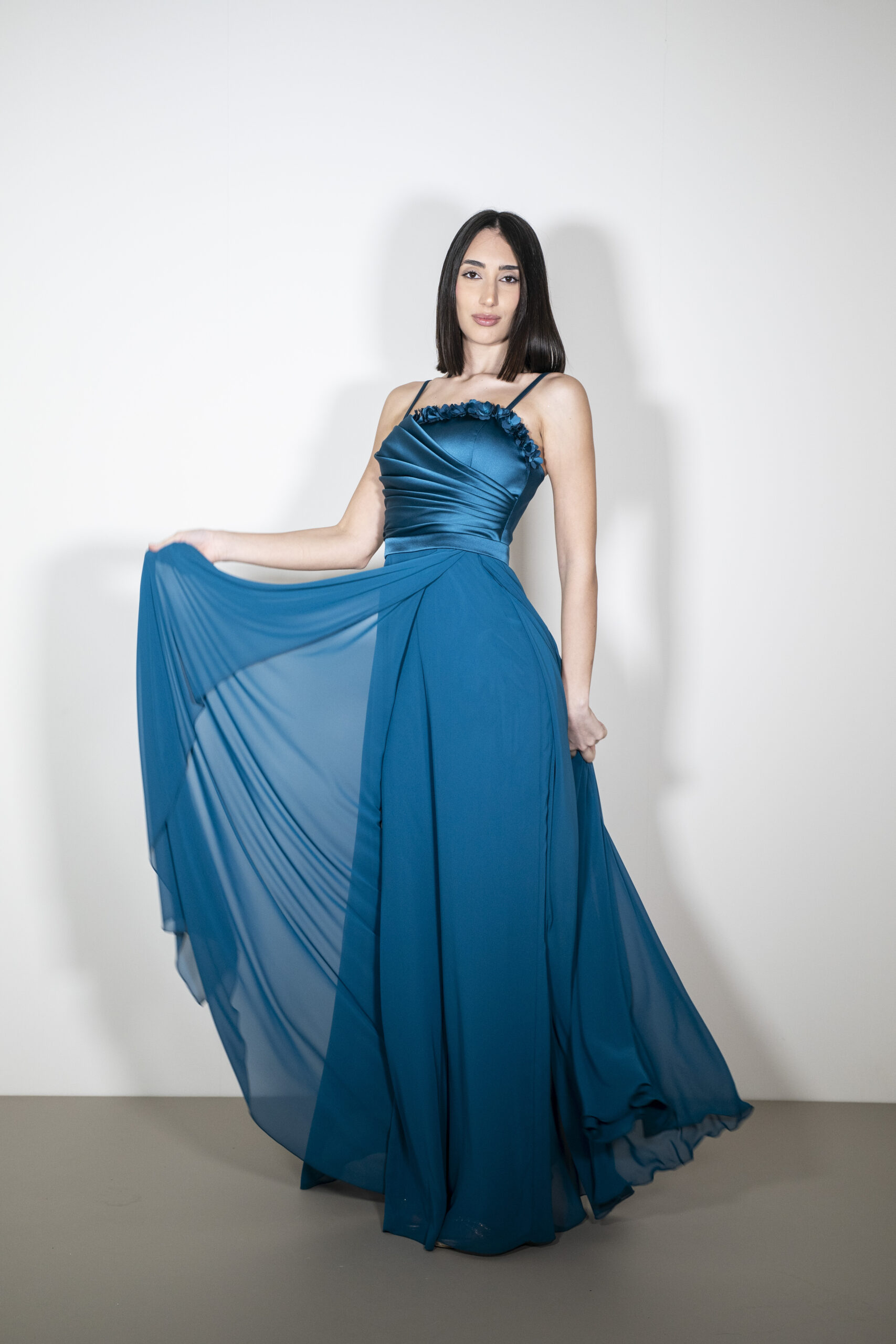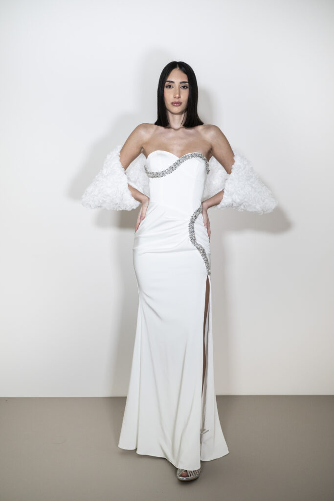 Dallo chiffon al mikado, dal georgette al satin, dallo stile principesco a quello avvolgente degli abiti a sirena, passando per capi classici ed intramontabili. Un vasto assortimento di modelli e colori per soddisfare anche le richieste più esigenti. All’interno del reparto Cerimonia Donna, un’ampia zona è riservata alle linee Diciottesimo, Damigelle, mamma sposo/a e alle linee curvy e calibrate. Tutti i capi sono selezionati con accuratezza e passione per esaltare la bellezza di tutte le donne e farle brillare sotto le luci della festa.